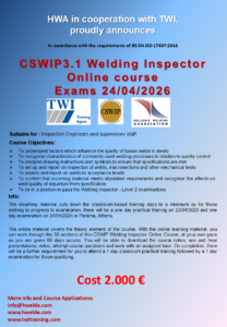 Αγαπητοί συνάδελφοι σας ενημερώνουμε πως η εταιρία μας, θα υλοποιήσει στην Αθήνα , το πρόγραμμα εκπαίδευσης και πιστοποίησης CSWIP 3.1 Welding Inspector (Level 2), με ημερομηνία εξετάσεων 24/04/2026.